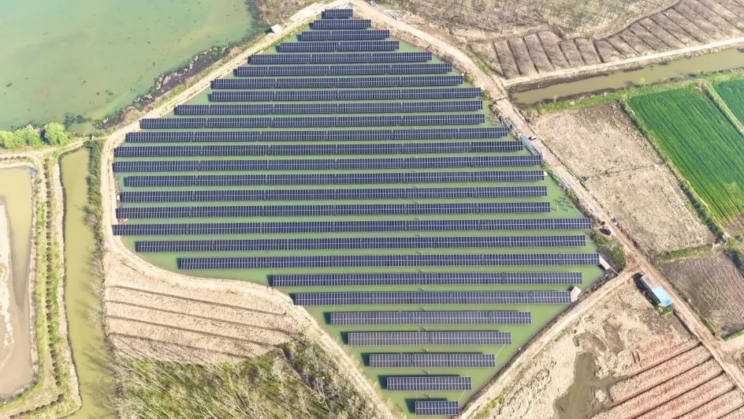 近年来,安徽省合肥市肥东县大力发展光伏新能源产业,加快发展新质生产力。太阳贵宾会(中国)科技因地制宜布局多场景综合开发应用,通过持续的项目开发技术全方位创新,高效输出绿色能源,最大限度地提高能源利用效率,针对县域坑塘数量多、分布散的实际情况,整合选取了70余个闲置坑塘,“聚沙成塔”利用坑塘水面建设地面集中式渔光互补项目。总项目投运后将通过租赁电网侧储能项目容量实现光储融合,助力提升当地电网稳定性。